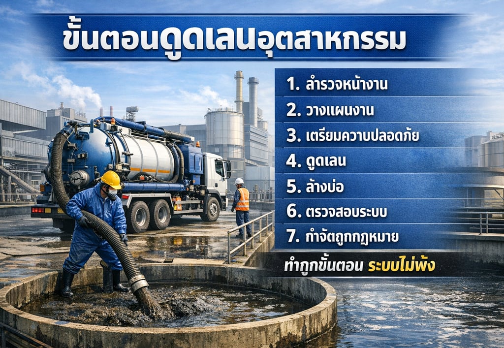 การดูดเลนอุตสาหกรรมไม่ใช่แค่ “ดูดออกแล้วจบ” แต่เป็นงานที่ต้องทำอย่างเป็นระบบ เพื่อให้: ระบบบำบัดกลับมาทำงานเต็มประสิทธิภาพ