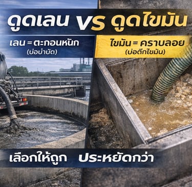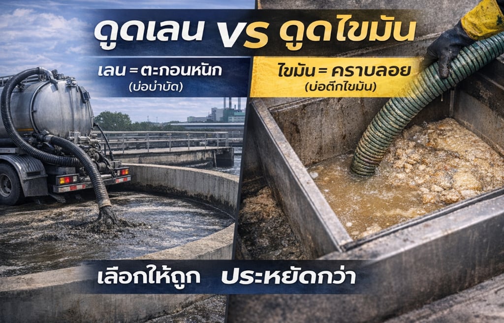 หัวข้อดูดเลนดูดไขมันจุดทำงานบ่อบำบัดบ่อดักไขมันลักษณะของเสียตะกอนหนักไขมันลอยความยากสูงกลางเครื่องมือรถดูดแรงสูง + ระบบกำจัดรถดูดทั่วไปความเสี่ยงมีสารเคมีกลิ่น + อุดตัน