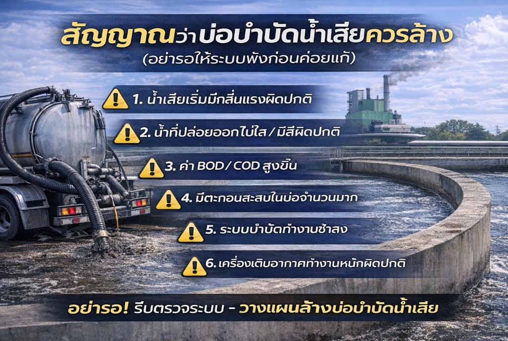 สัญญาณว่าบ่อบำบัดน้ำเสียควรล้าง (อย่ารอให้ระบบพังก่อนค่อยแก้)